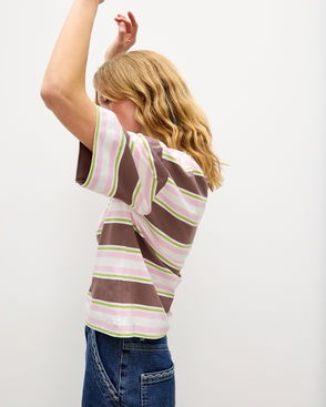 Add a pop of by-the-sea style to your basic white T-shirt with this easy throw-on piece that's made from 100% cotton for a breathable, lightweight feel. Printed with a tonal red and pink ocean-inspired graphic, painted by hand in the OB creative studios, it features fish, flamingo and sun motifs, and an 'Ola Del Mar' slogan that nods to rolling ocean waves. The relaxed, boxy fit can be worn over wide leg trousers for a casual look or neatly tucked in for a cleaner silhouette.