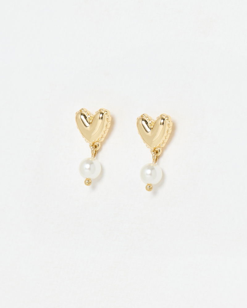 Olwen Shiny Gold Tone Heart & Faux Pearl Drop Earrings