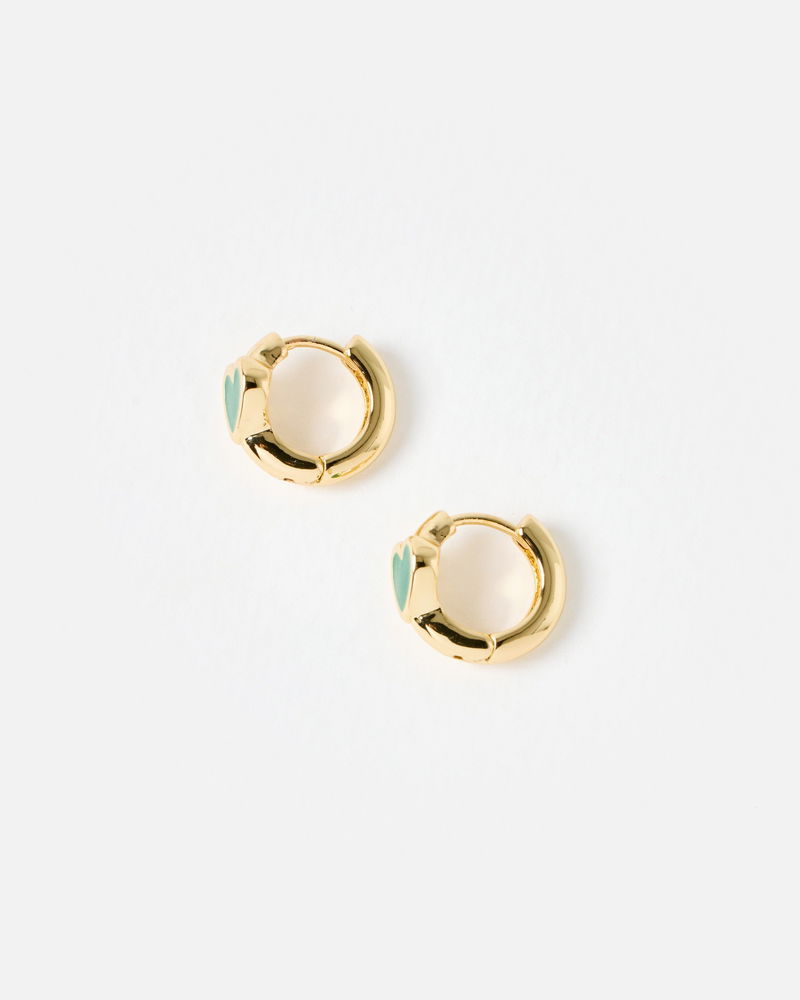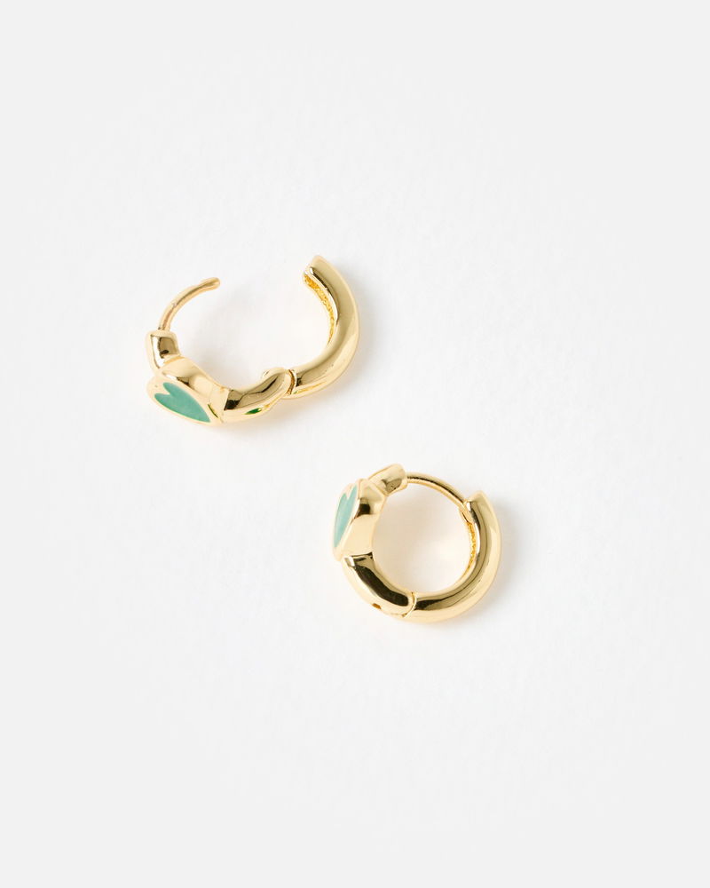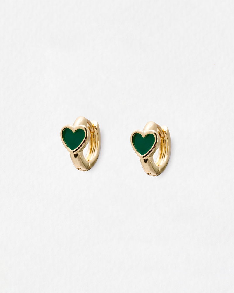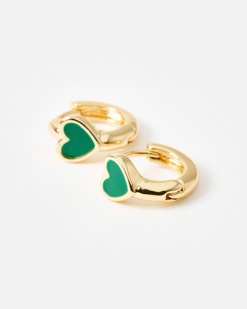 Ottie Green Heart Gold Tone Huggie Earrings