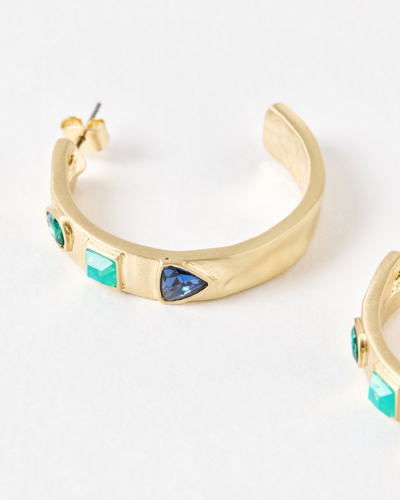 Palmer Blue Stone Gold Tone Hoop Earrings
