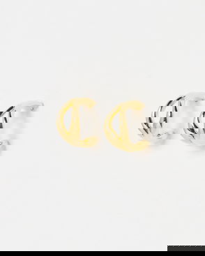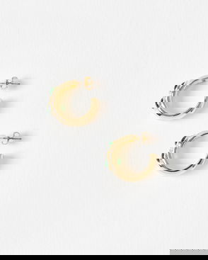 Gold plated hoop earrings with silver gems and a green pavati charm.