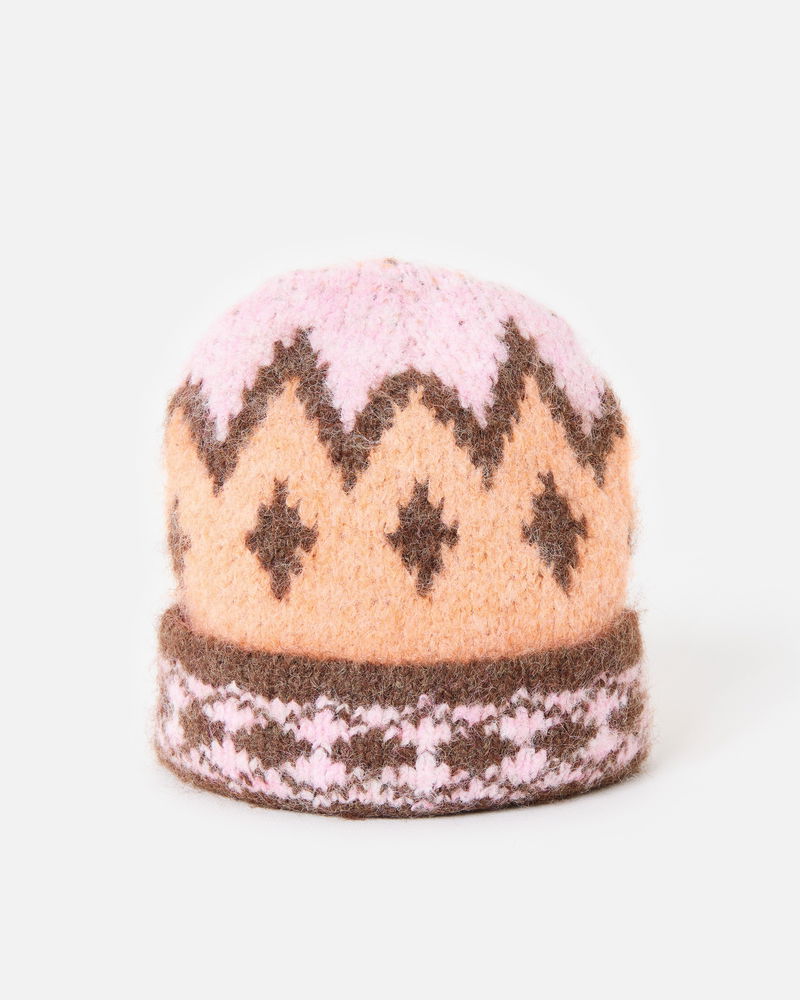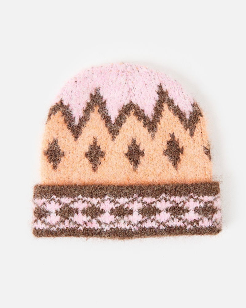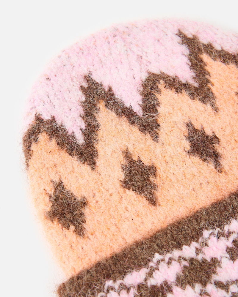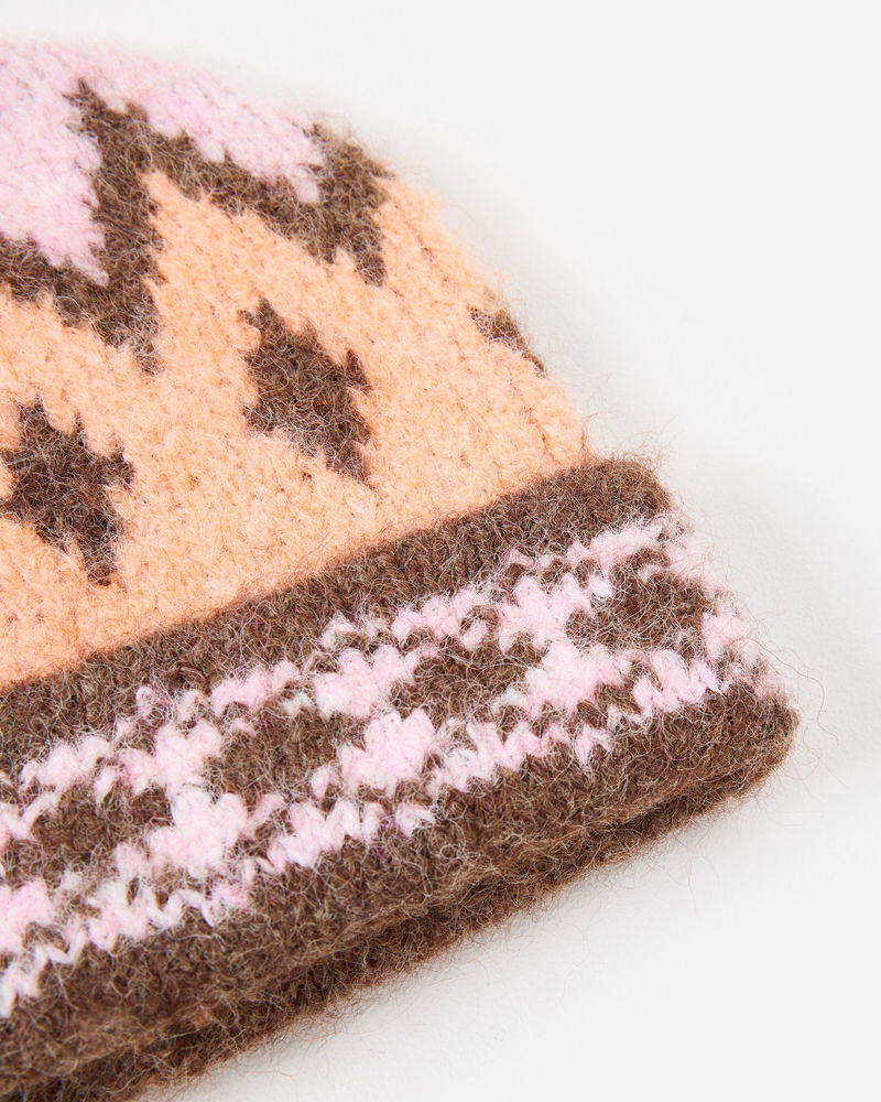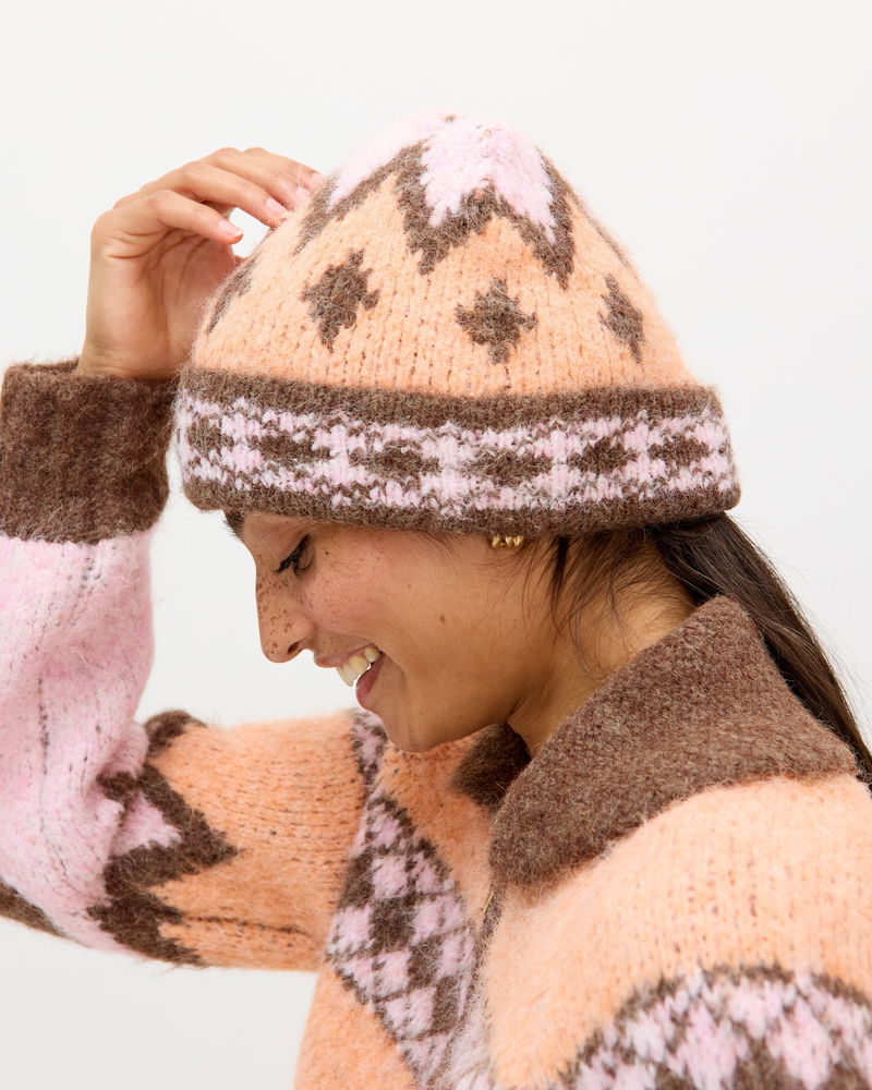 Peach & Brown Fair Isle Knitted Beanie Hat