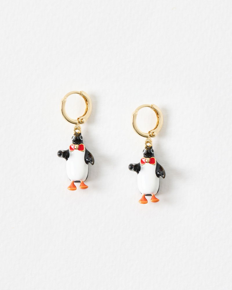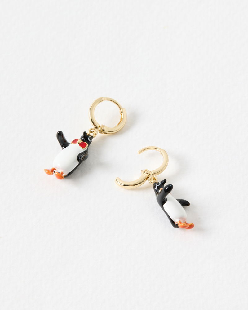 Penguin Enamel Charm Drop Huggie Earrings