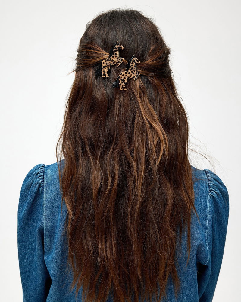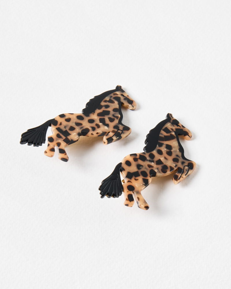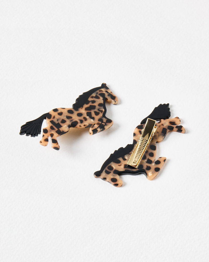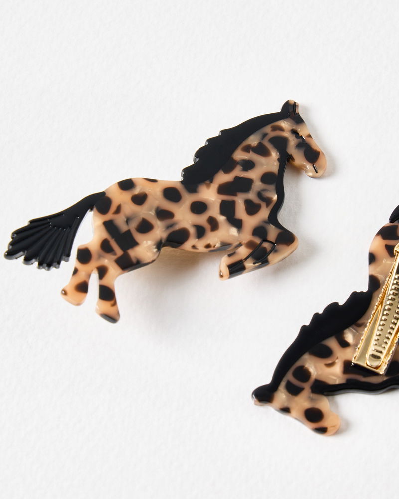 Need a gift idea for the horse-obsessed? We've designed this pair of horse hair clips with a brown an black tortoiseshell-style pattern and gold fastening on the back.