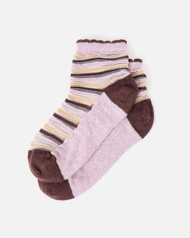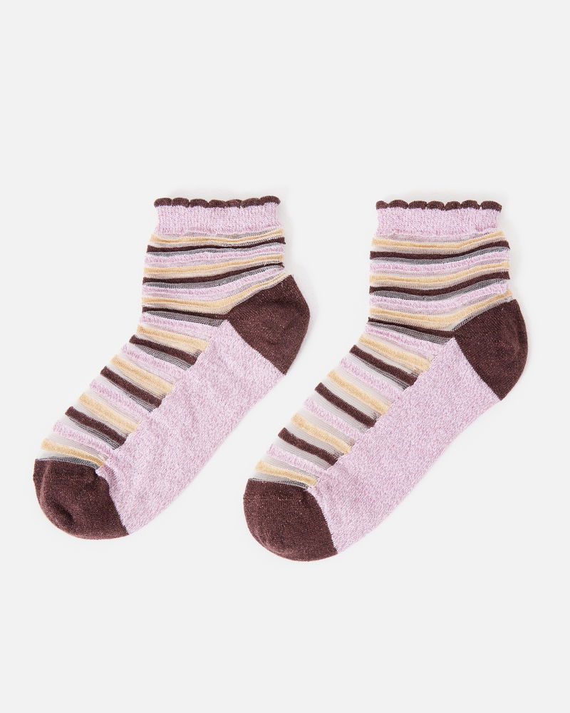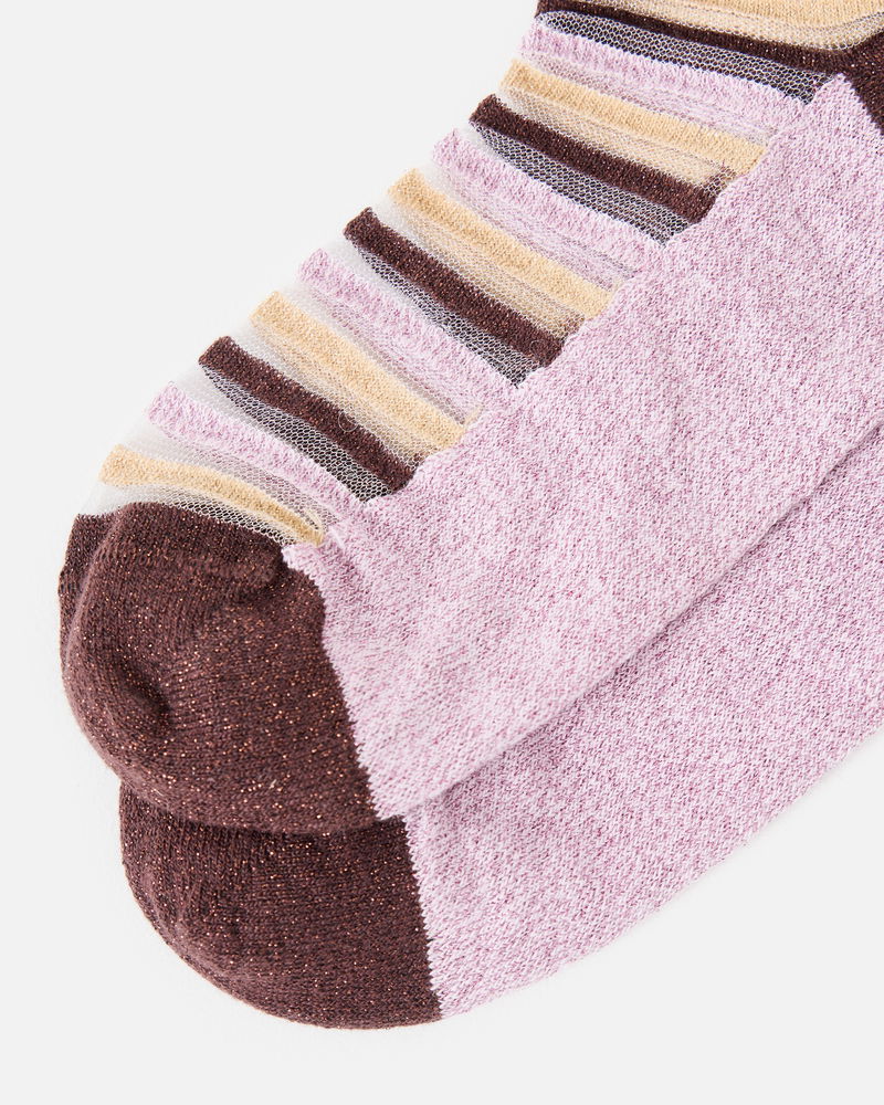 Pink & Brown Glitter Striped Sheer Ankle Socks