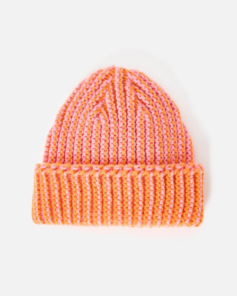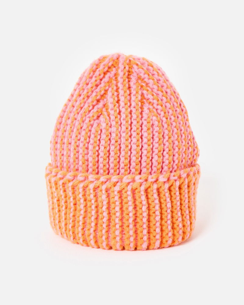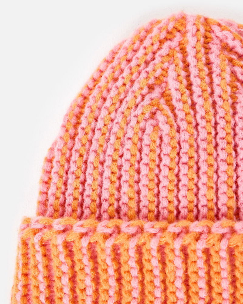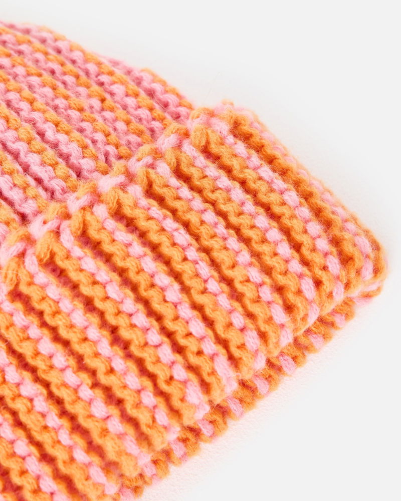 Pink & Orange Striped Chunky Ribbed Beanie Hat