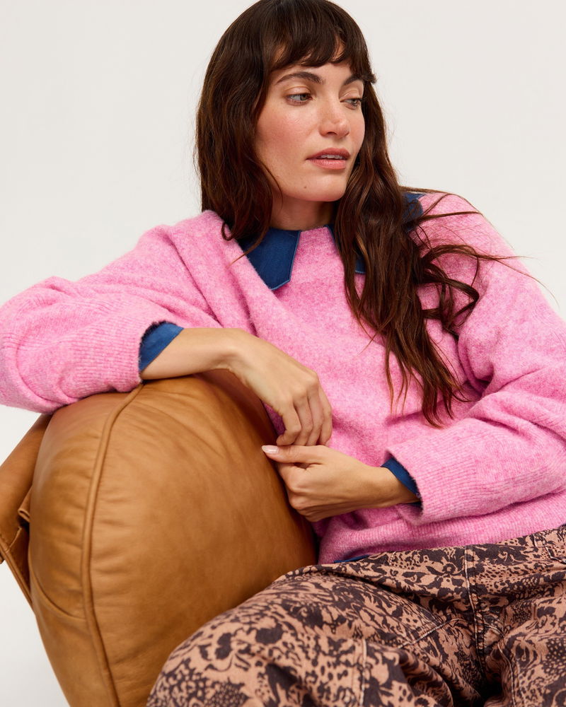 Pink Crew Neck Knitted Jumper