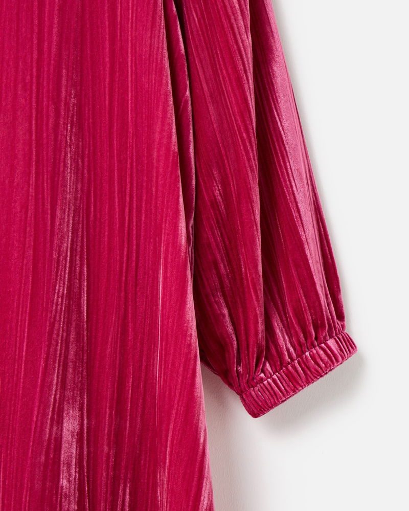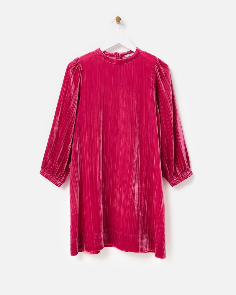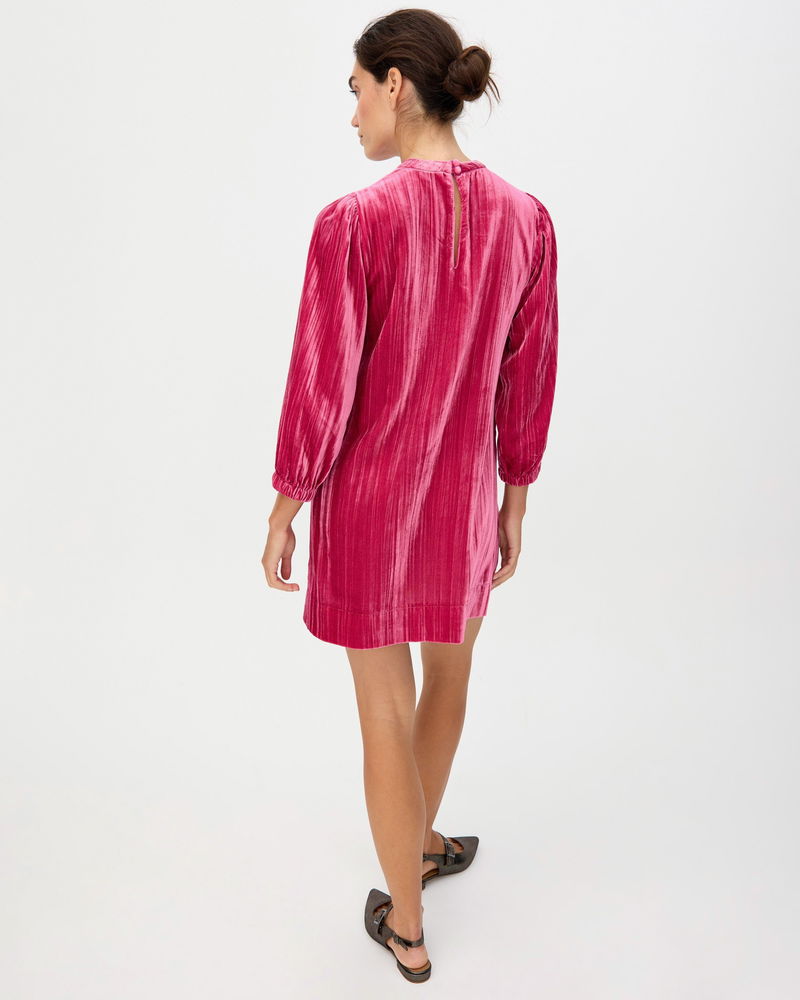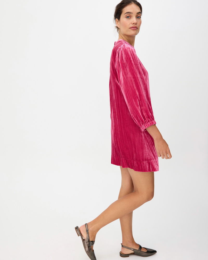 Made from rich, soft, deep-pink velvet, our showstopping mini dress adds texture and sophistication to your autumn wardrobe. Designed with a high neckline that fastens at the back with two coordinating velvet-covered buttons, its relaxed, straight-cut silhouette features a subtle ribbed finish and we've added gently puffed three-quarter length sleeves with a gathered cuff. Pair with flats or boots for an easy seasonal look that will bring evening chic or daytime drama.