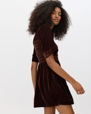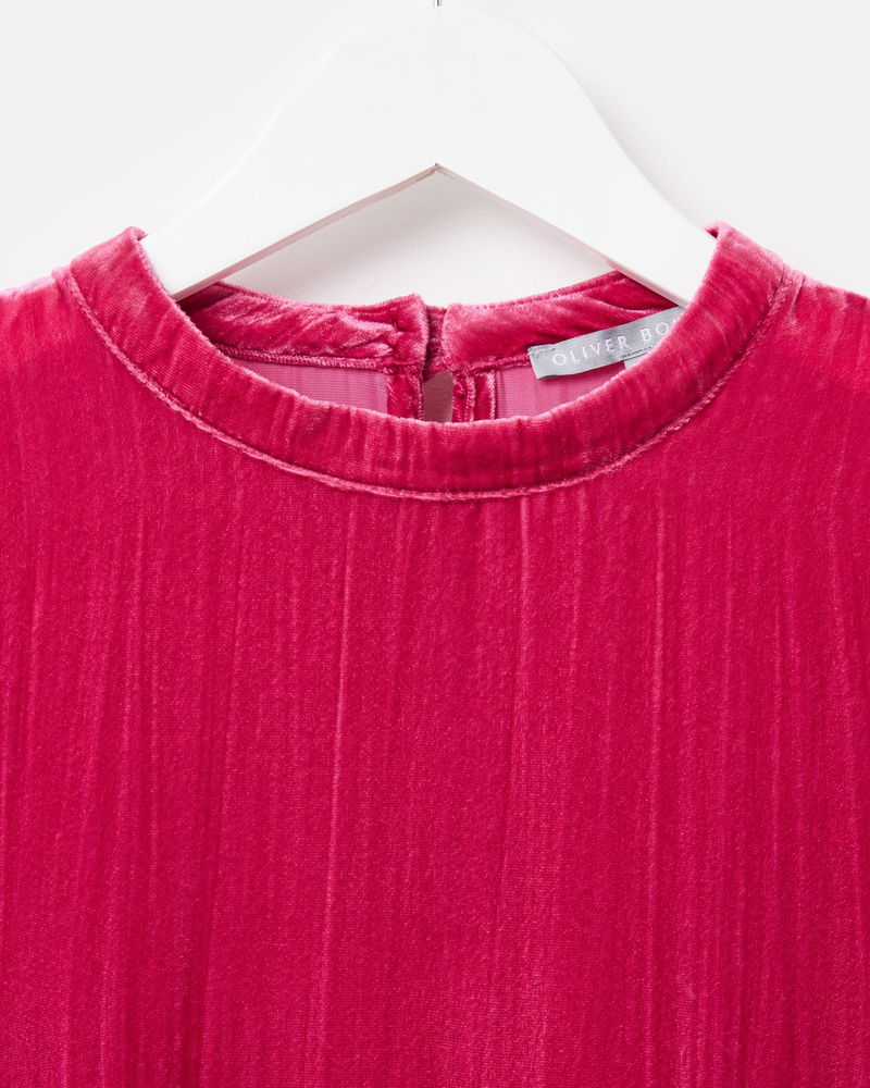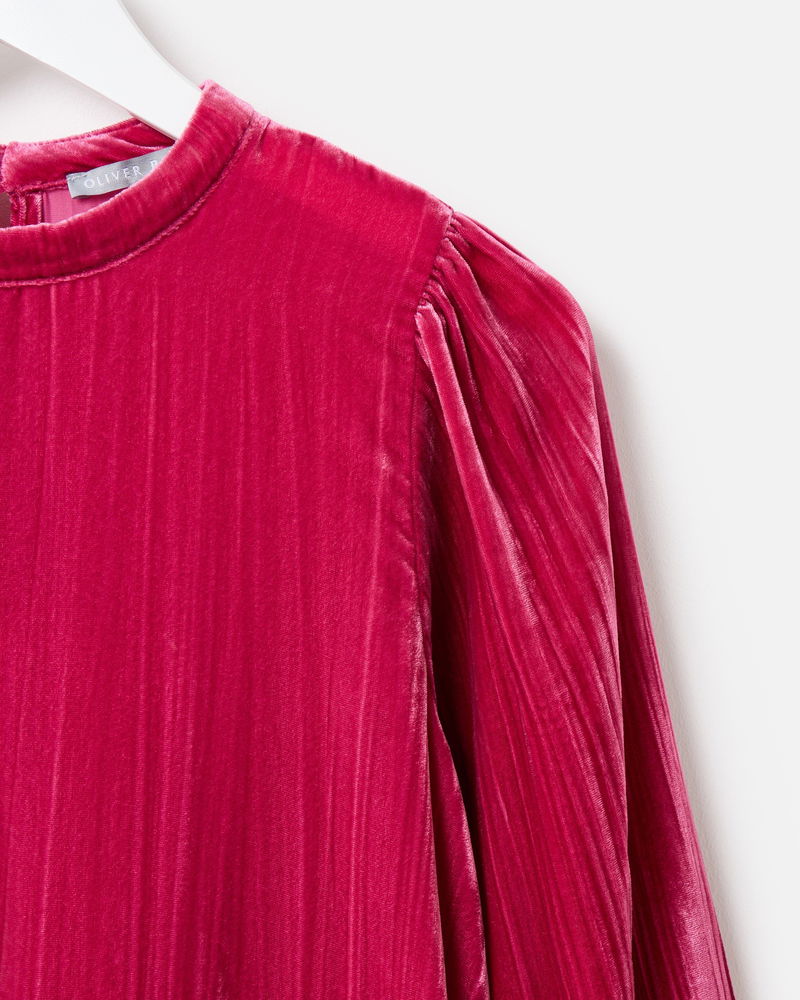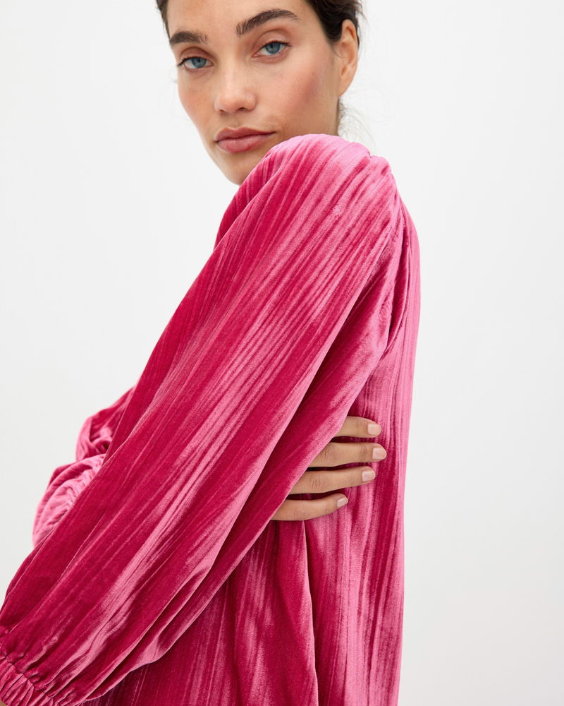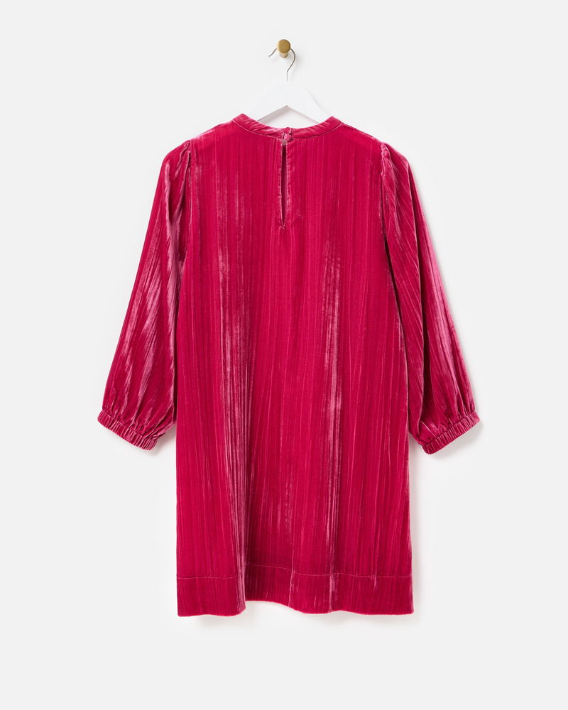 Made from rich, soft, deep-pink velvet, our showstopping mini dress adds texture and sophistication to your autumn wardrobe. Designed with a high neckline that fastens at the back with two coordinating velvet-covered buttons, its relaxed, straight-cut silhouette features a subtle ribbed finish and we've added gently puffed three-quarter length sleeves with a gathered cuff. Pair with flats or boots for an easy seasonal look that will bring evening chic or daytime drama.