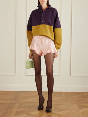 Made from 100% cotton for a breathable, lightweight feel, these textured stripe shorts combine this season's key print with an easy-to-style colour palette. The chocolate brown and light pink polka dot is complemented by pretty scalloped trims along the hem and side pockets, and we've added an elasticated waistband for all-day comfort and easy, pull-on fit. Style with a vest for a casual, daytime look or with the matching co-ord blouse for a co-ordinated summer-ready look. Part of a co-ord set. Pieces sold separately