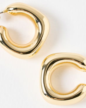 In a heart shaped profile, these small gold plated hoop earrings feature a clicker clasp closure and a smooth, shiny finish. Style with a gold heart necklace or bracelet to complete the look.