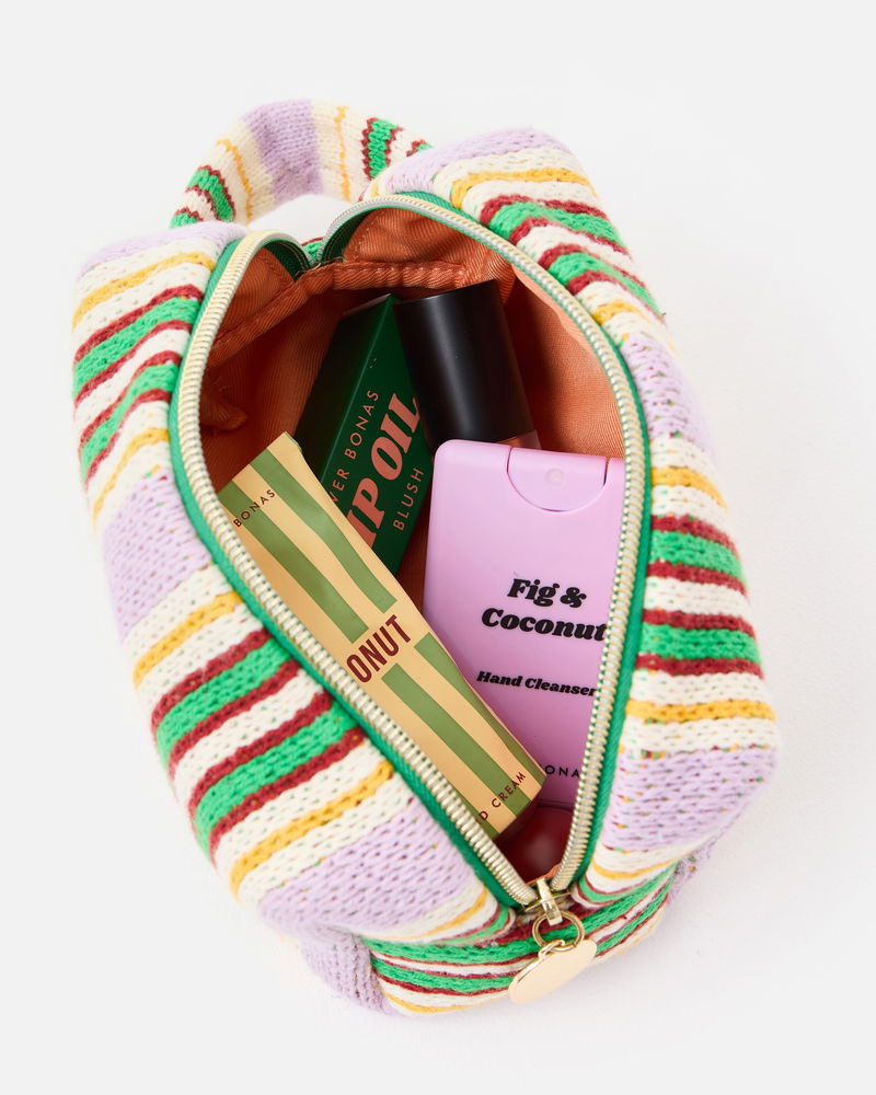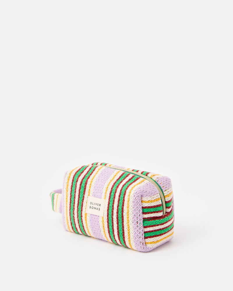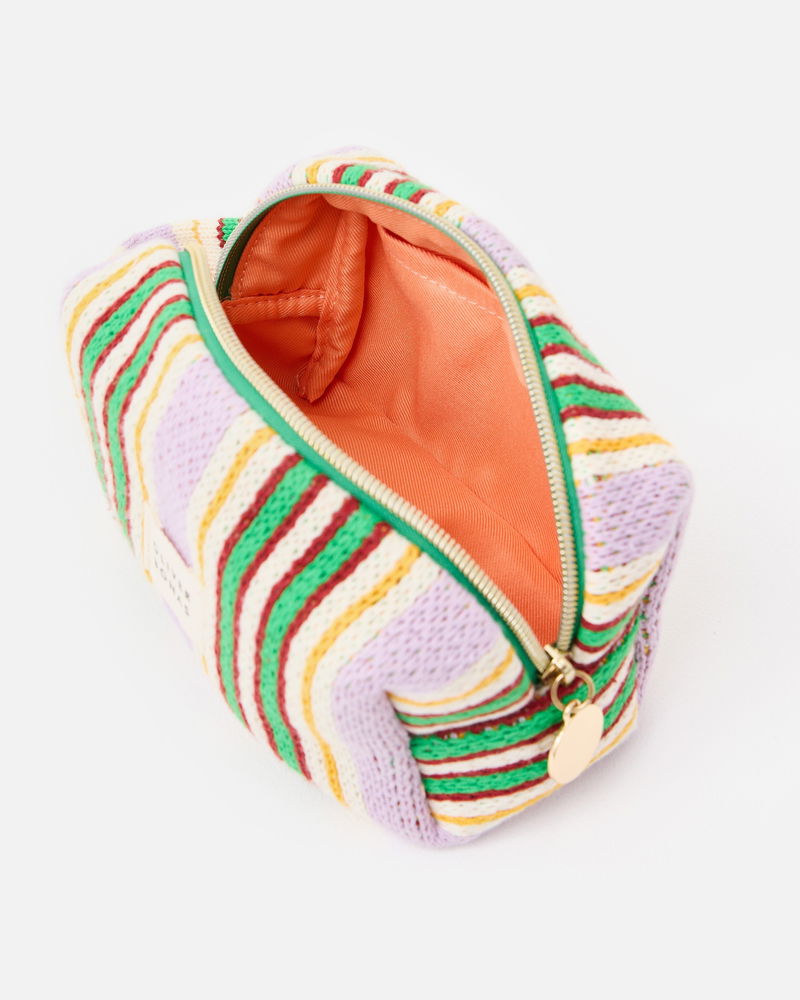 Purple & Green Striped Knitted Makeup Bag