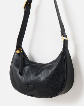 Black tote bag with gathering across the top and a detachable zipped purse to keep your small essentials to hand.
