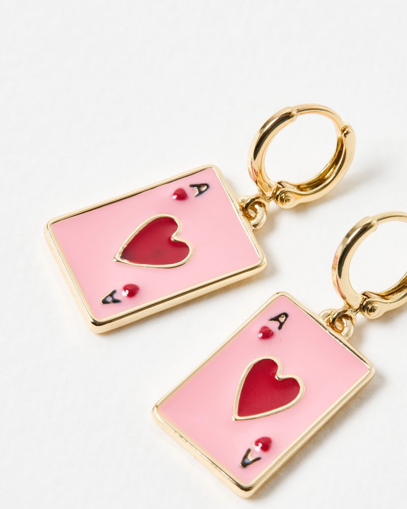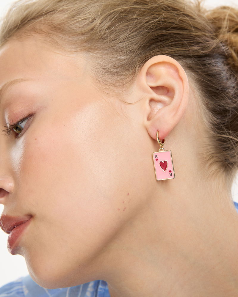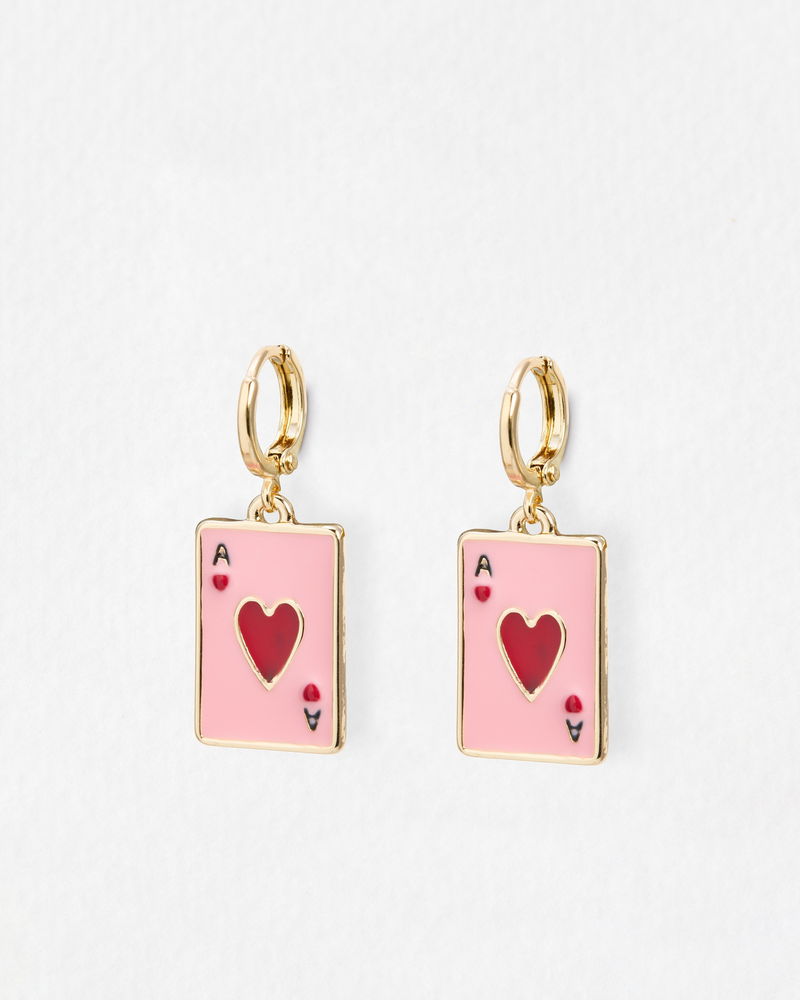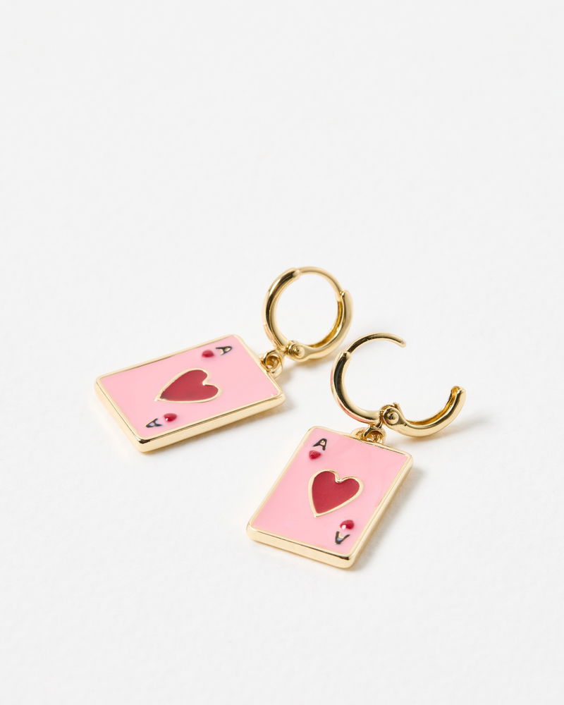 Rayna Playing Card Enamel Charm Huggie Earrings