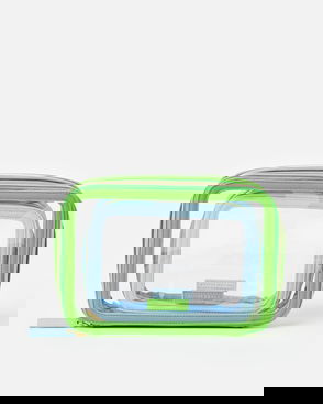 Cream make up bag printed with tonal red cherries, drawn and designed in the OB creative studios.