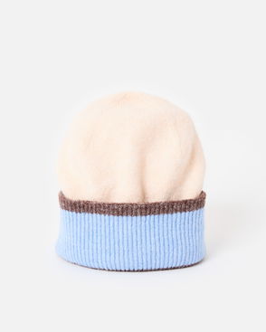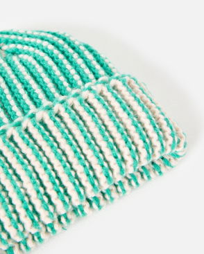 Jade green beanie hat knitted in a soft, stretchy rib.