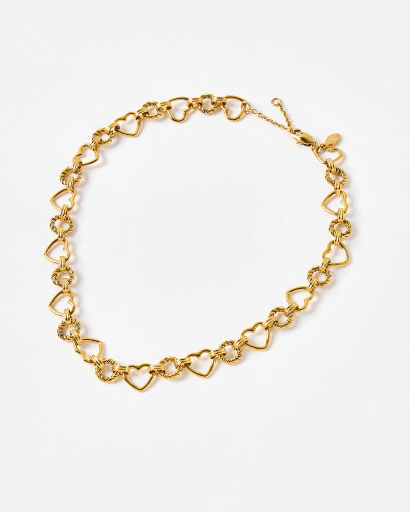 Romy Gold Tone Stainless Steel Waterproof Heart Chunky Chain Necklace