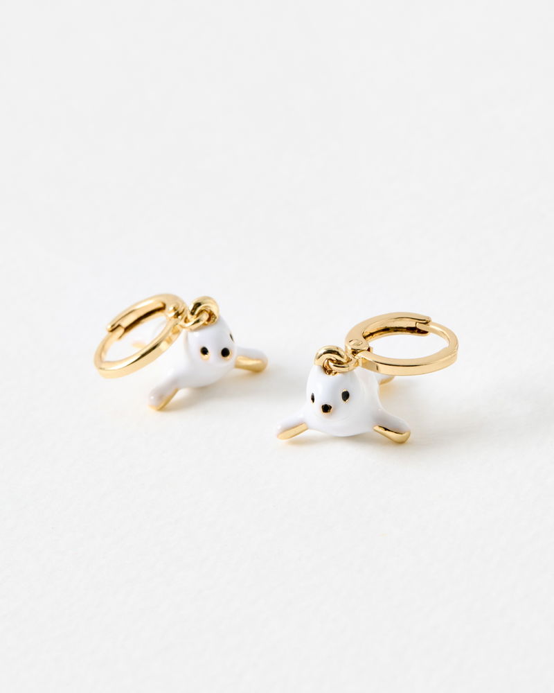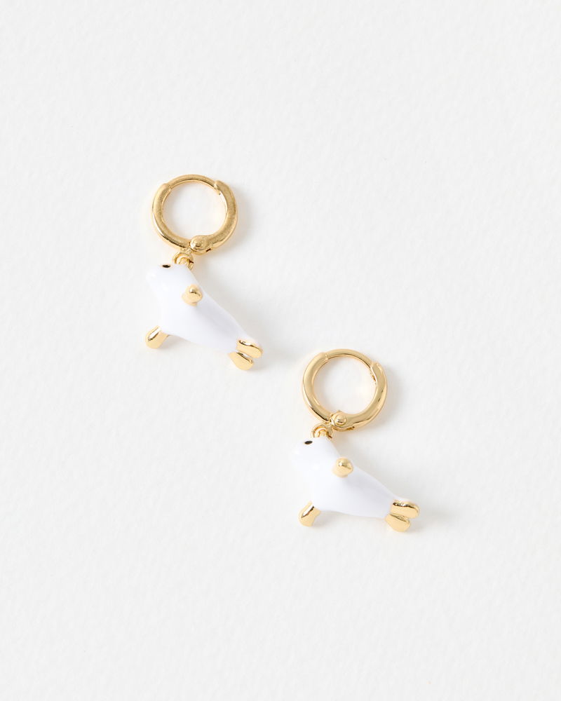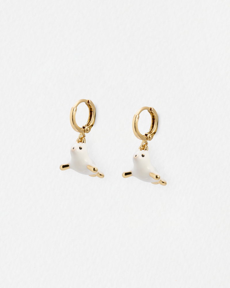 Add a playful choice to your jewellery box with these gold toned huggie earrings, suspending an enamel sea charm with golden fins.