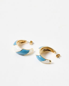 Catch the light in style with these blue-toned fan drop earrings. Their two-tone ribbed design shifts between soft and deeper blues, creating a mesmerising shimmer with every move. Finished with a secure stud backing, they?re perfect for brightening up eveningwear or adding a pop of colour to everyday outfits.