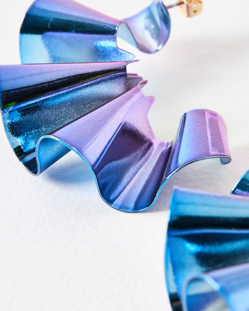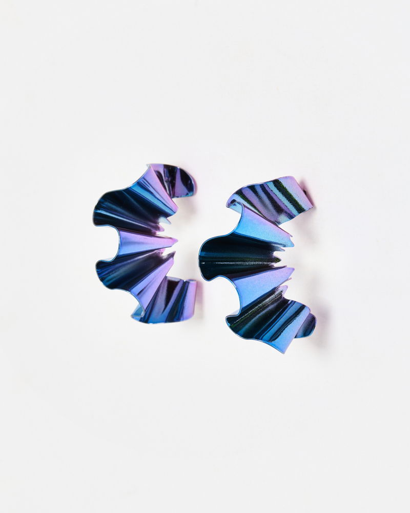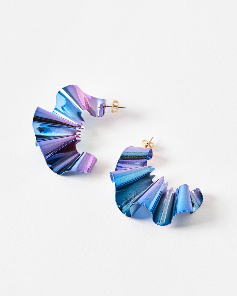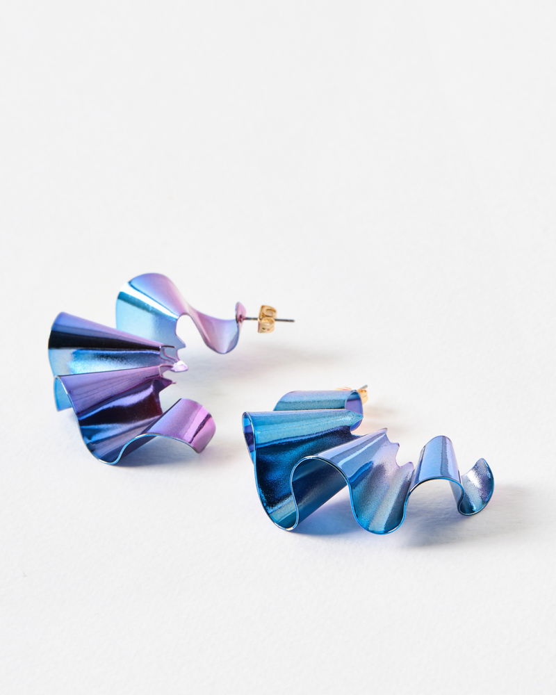 Make a statement with these hoop earrings. Designed in a tonal blue metal that reflects the light, we've added a dramatic crinkle shape for extra impact.