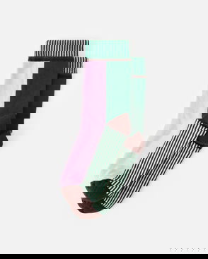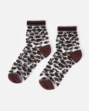 Sheer ankle socks with pastel spots and sparkly green trims.