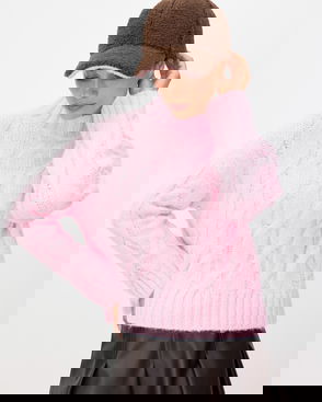 Pink crew neck sweatshirt with broderie detailing in a square design, ribbed trims and a casual, relaxed fit.