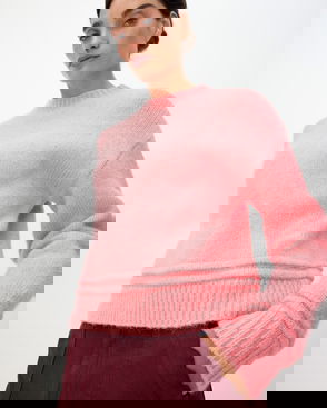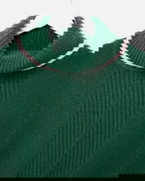 Black long sleeve top knitted in a chevron stitch pattern and wide ribbed trims.