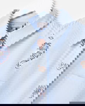 Take one simple cotton shirt and turn it into something extra with a striped, textured feel and all-over neon orange embroidered sun motifs. Designed with a collarless crew neckline and white embroidered cut-out details across the shoulders and back, we've added white button closures down the front. The relaxed fit and curved hem give it a laidback yet elevated feel that's easy to style with your go-to denim for a summer-ready look.