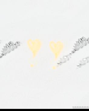 Statement earrings featuring textured gold-toned hoop earrings on stud backs, with a heart shaped charm decorated with a pink glitter centre, green enamelling, and finished with a freshwater pearl drop. Featuring removable charms for multiple styling options, wear these heart earrings to weddings, summer parties and graduation for an elegant, playful look, and be sure to style with other heart jewellery pieces for a cohesive finish.
