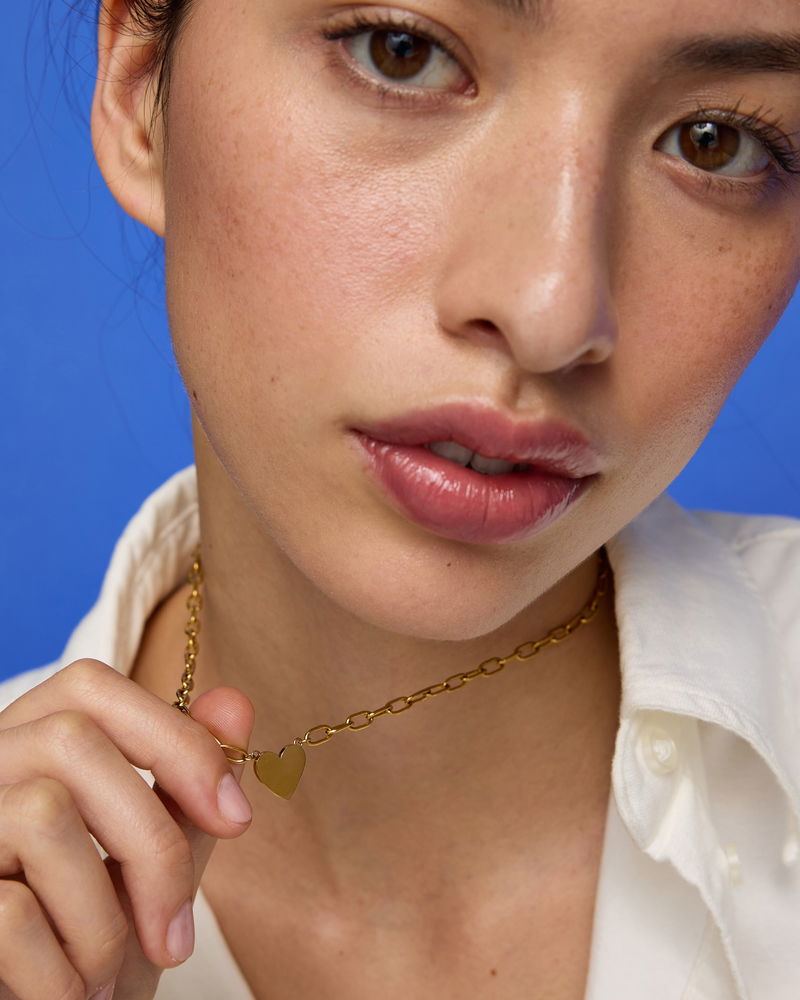 Talula Gold Tone Stainless Steel Waterproof Heart Pendant Chain Necklace