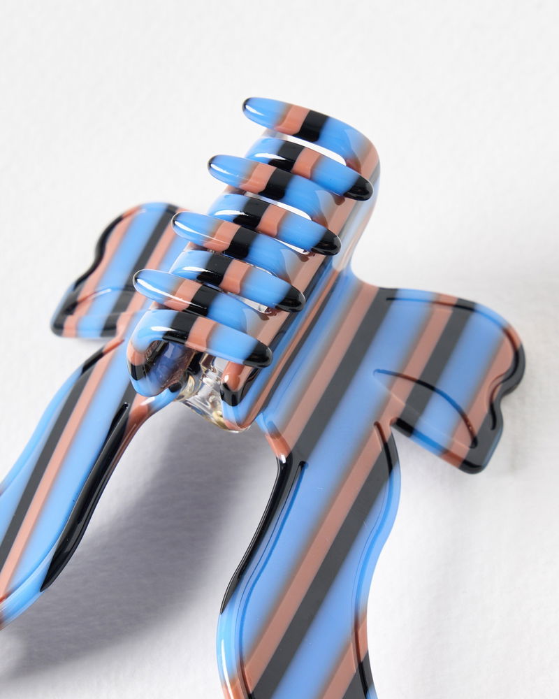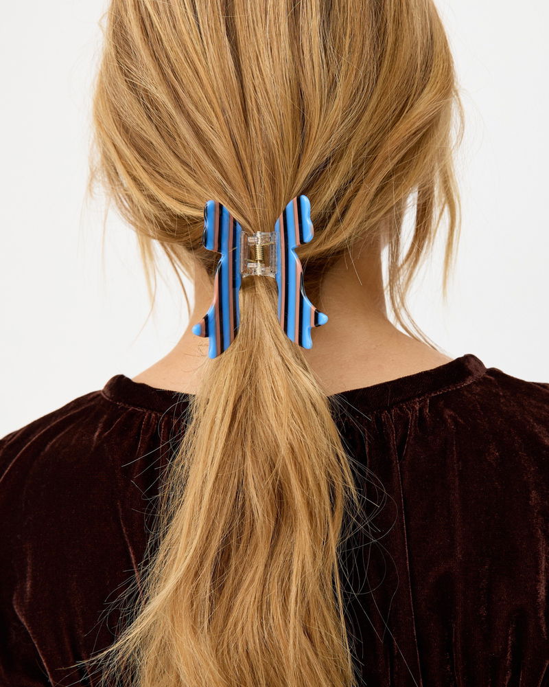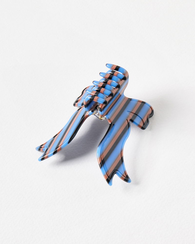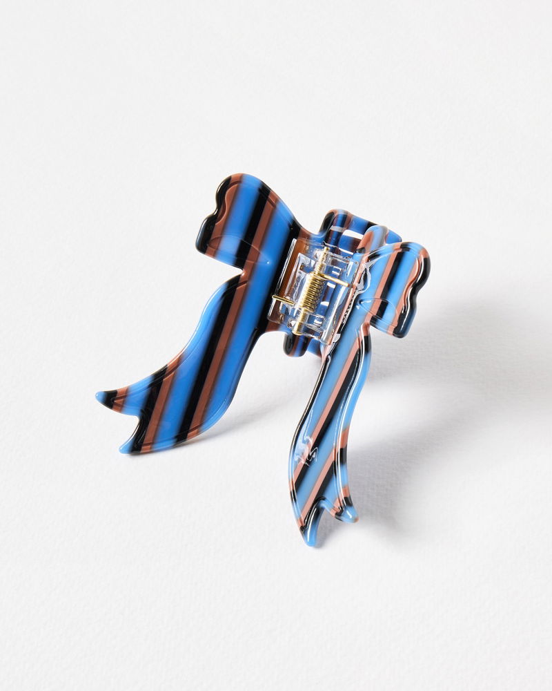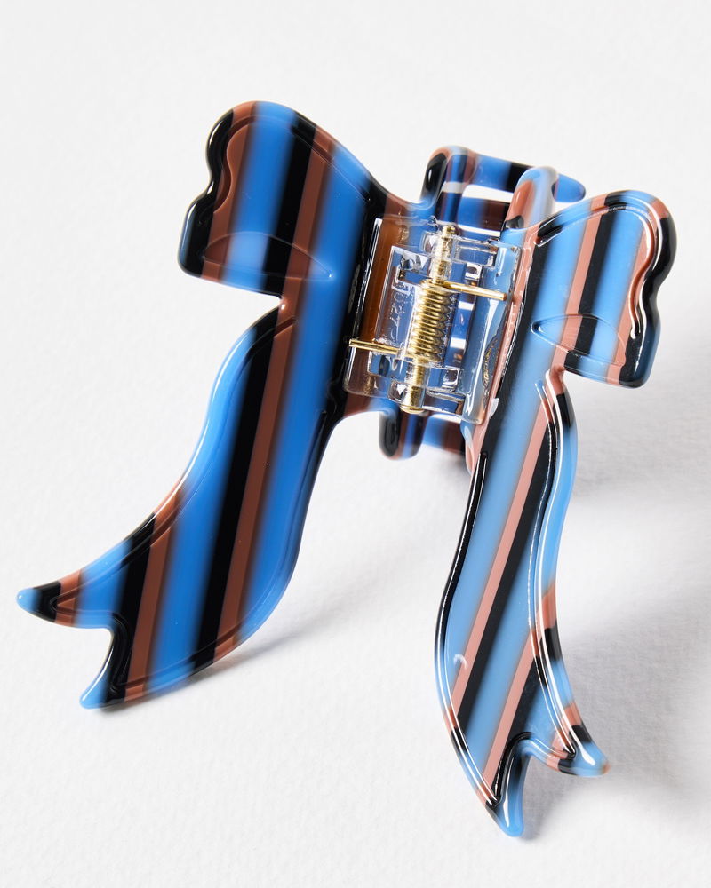 Tatiana Bow Blue Stripe Resin Hair Claw Clip