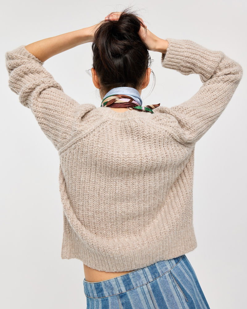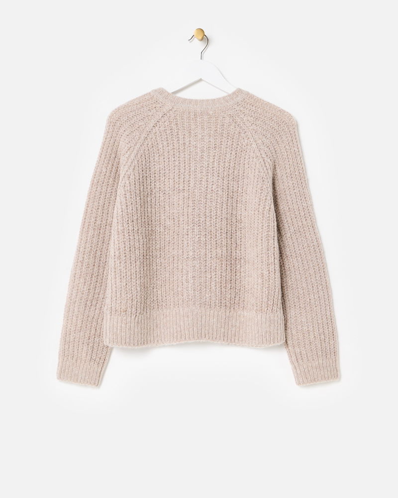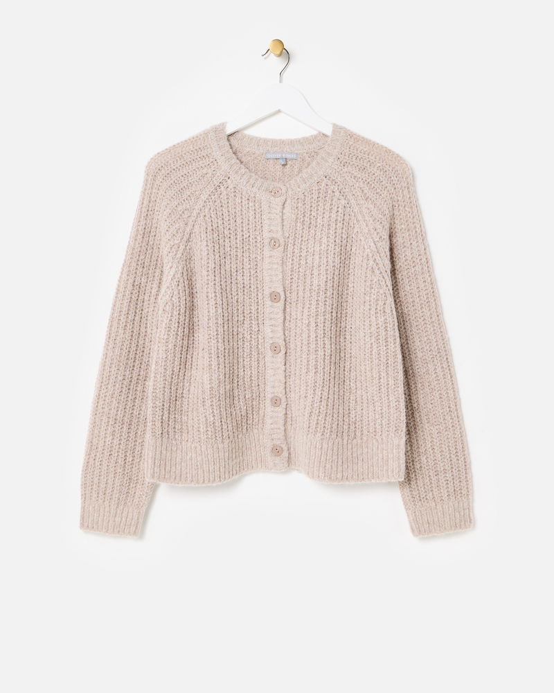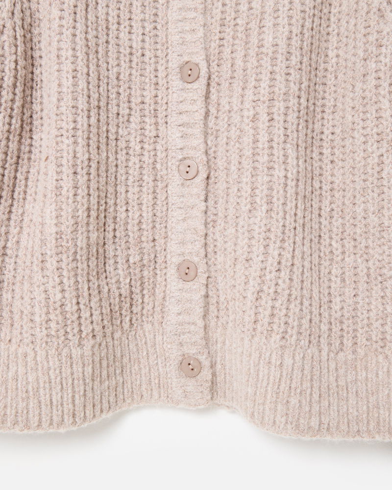 Taupe Fisherman Rib Crew Neck Knitted Cardigan
