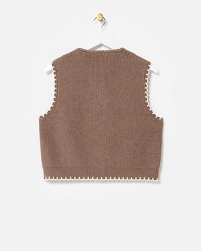 Need a light knit for when sunny days turn into summer nights? Oliver Bonas designed their bright orange vest with an intricate crochet-inspired striped pattern and pretty scalloped trims. Made from a soft cotton blend, it features contrasting white blanket stitches along the crew neckline and armholes, because we're all about the details. Simply style with a pair of denim shorts for an easy everyday look this summer.