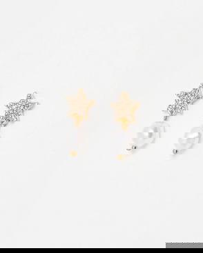 With a huggie earring base and gold tone finish, these faux pearl drop earrings feature a light pink bead inlaid with tiny gemstones, followed by a textural faux pearl to finish. With subtle colour and an elegant touch, these pearl drop earrings are perfect for spring events and occasion wear, alongside a complimentary pearl necklace or bracelet.