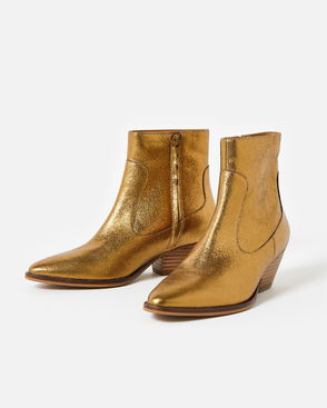 With a black heeled sole and gold zip, these western-style boots have embroidered details in an off-white tone.