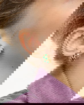 In collaboration with Just Trade, these statement heart earrings have been handmade by skilled artisans in Peru. Using traditional jewellery making techniques, they feature a hand-cut brass disc with a hammered finish, and green crocheted Pima cotton heart charms that dangle beneath the lobe. Tactile and textural, these large green heart earrings are perfect for summer wear, whether complimenting holiday outfits with a green hue or styling with festival looks. Be sure to wear alongside the Nieves Green Crochet Heart Pendant Necklace to complete the matching jewellery set.