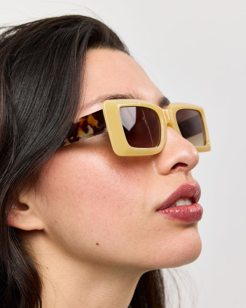 Yellow & Faux Tortoiseshell Rectangular Sunglasses