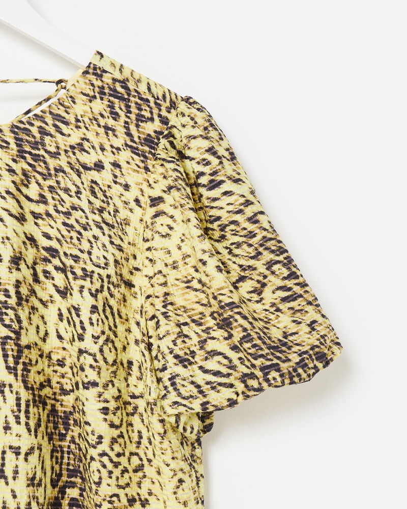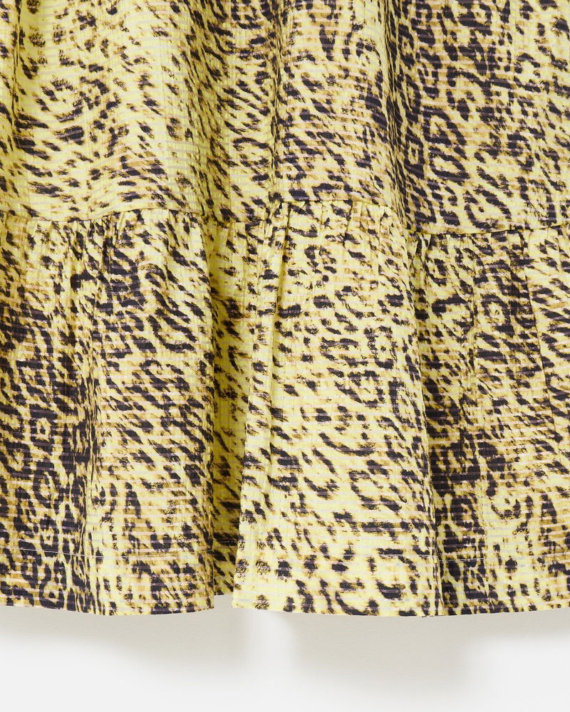 Yellow Animal Print Textured Puff Sleeve Mini Dress