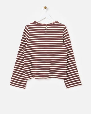 Yellow jersey top with short flutter sleeves completed with rickrack trimming, pleated shoulders and a relaxed, casual fit.