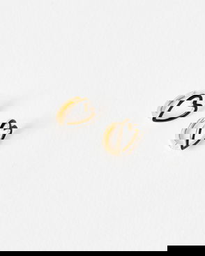 Gold toned stud earrings with an organic-shaped black stone drop detail.