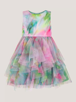 With a milkshake graphic to the bodice, this long sleeve fit and flare dress from Olivia Rubin is made from a robust cotton blend with a flouncy chiffon skirt. Pop it on with tights and their favourite shoes to finish off the look.