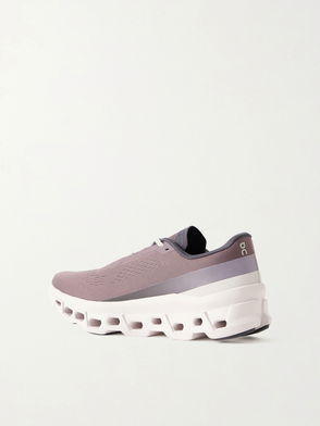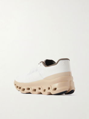 On Running mesh sneakers. Designer-stamped tongue, reflective panel with logo print, padded ankle, reflective logo print at toe, logo print at side, logo embossed CloudTec.