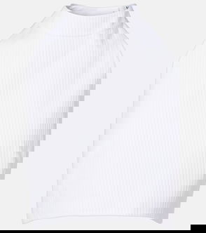 OpéraSPORT white cotton top Ribbed, scoop-neck, logo embroidery at front, blue trims. Slips on.