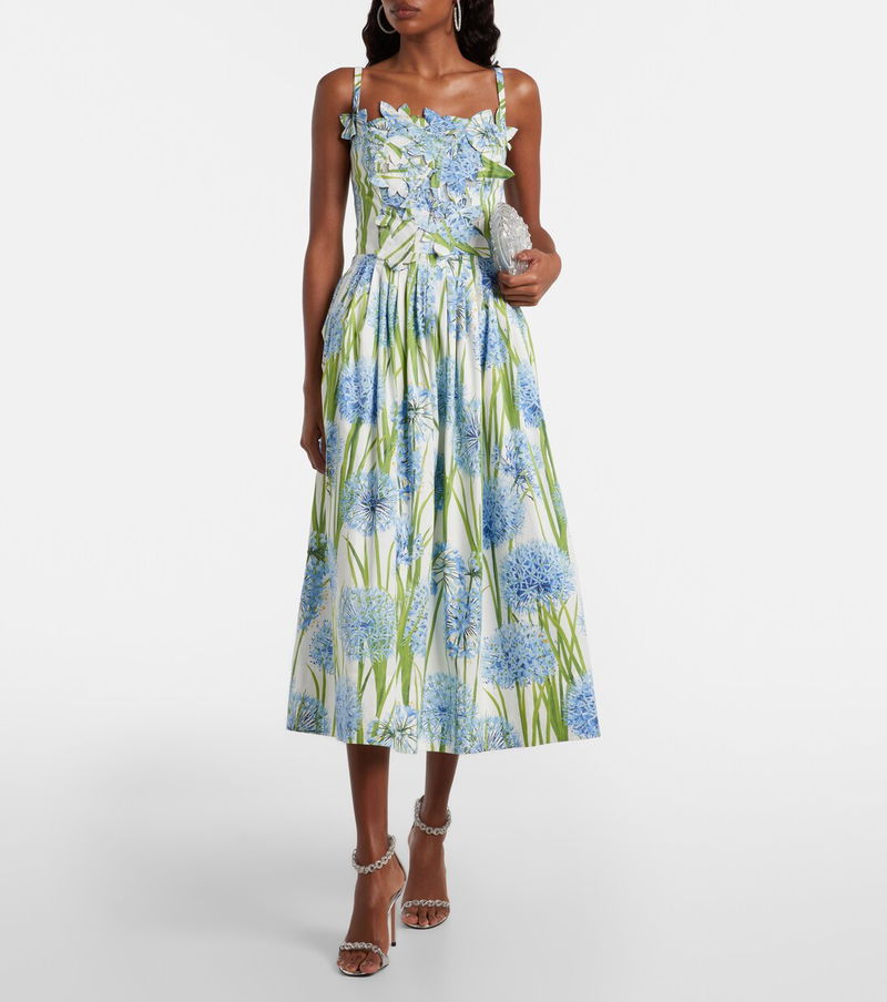 Oscar de la Renta's designs bring the beauty of nature to ready-to-wear. Made from cotton-blend poplin, the Allium midi dress features a charming floral print and matching floral appliqués at the bodice.