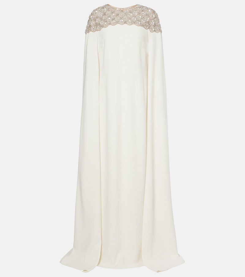Oscar de la Renta's grandiose gowns are designed to grace red carpets and ballrooms. Made from a luxurious silk blend, this design boasts a striking caped silhouette and shimmering embellishments at the neckline.