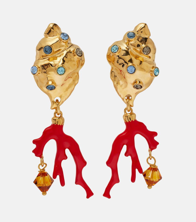Indulge in Oscar de la Renta's red carpet-ready design for your special events. These eye-catching clip-on earrings are sculpted into seashells and coral branches, as well as embellished with vibrant crystals.