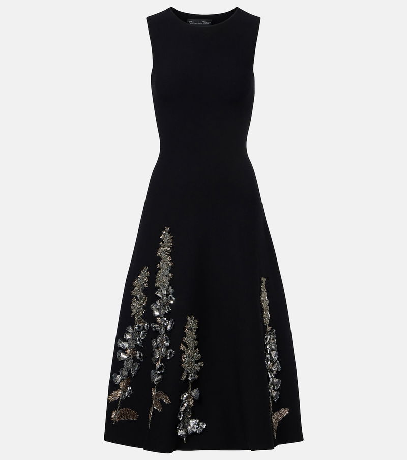 Oscar de la Renta's designs bring the beauty of nature to ready-to-wear. This midi dress is a sleeveless style made from jacquard and embellished with sequins and crystals.