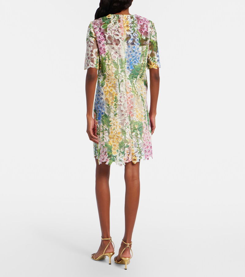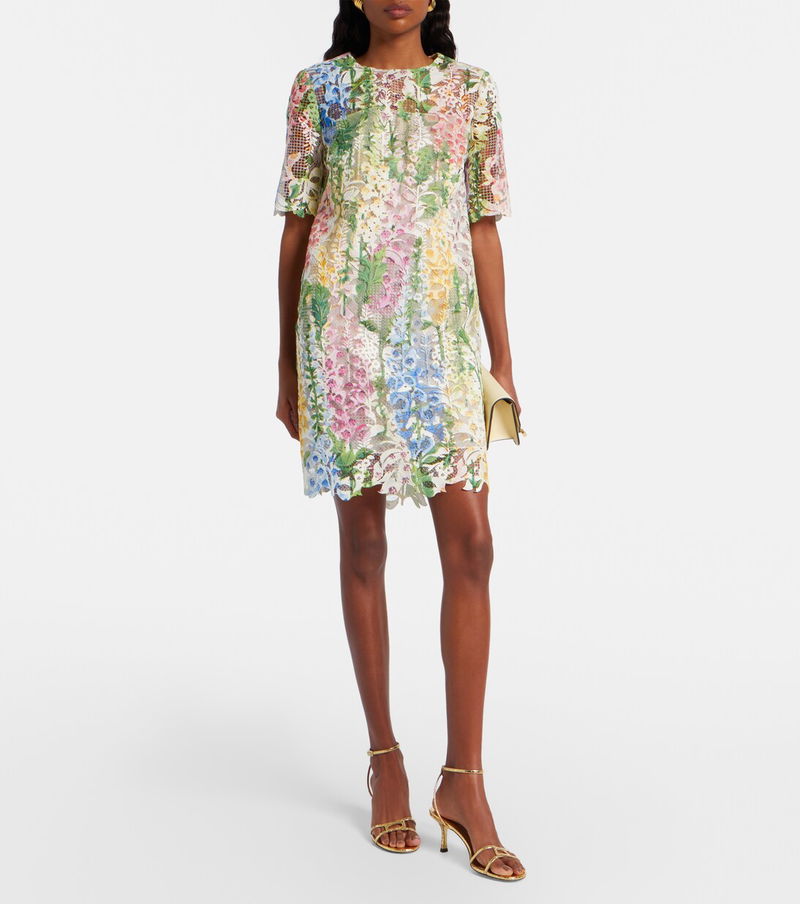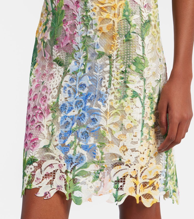 Oscar de la Renta's designs bring the beauty of nature to ready-to-wear, as seen in this blooming minidress. Crafted from white lace, the design is covered in vibrant floral motifs all over.