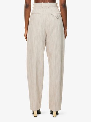 High-rise Straight Wool And Linen Pants