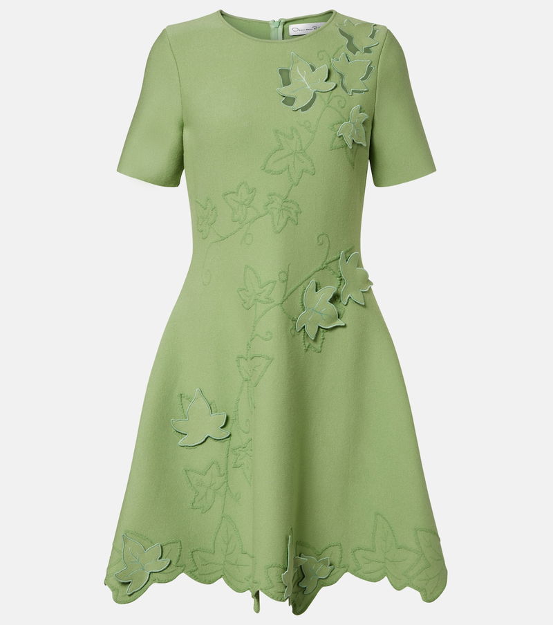 Oscar de la Renta's designs bring the beauty of nature to ready-to-wear. This minidress is presented in a flattering flared silhouette, detailed with a combination of embroidered and cutout ivy details.